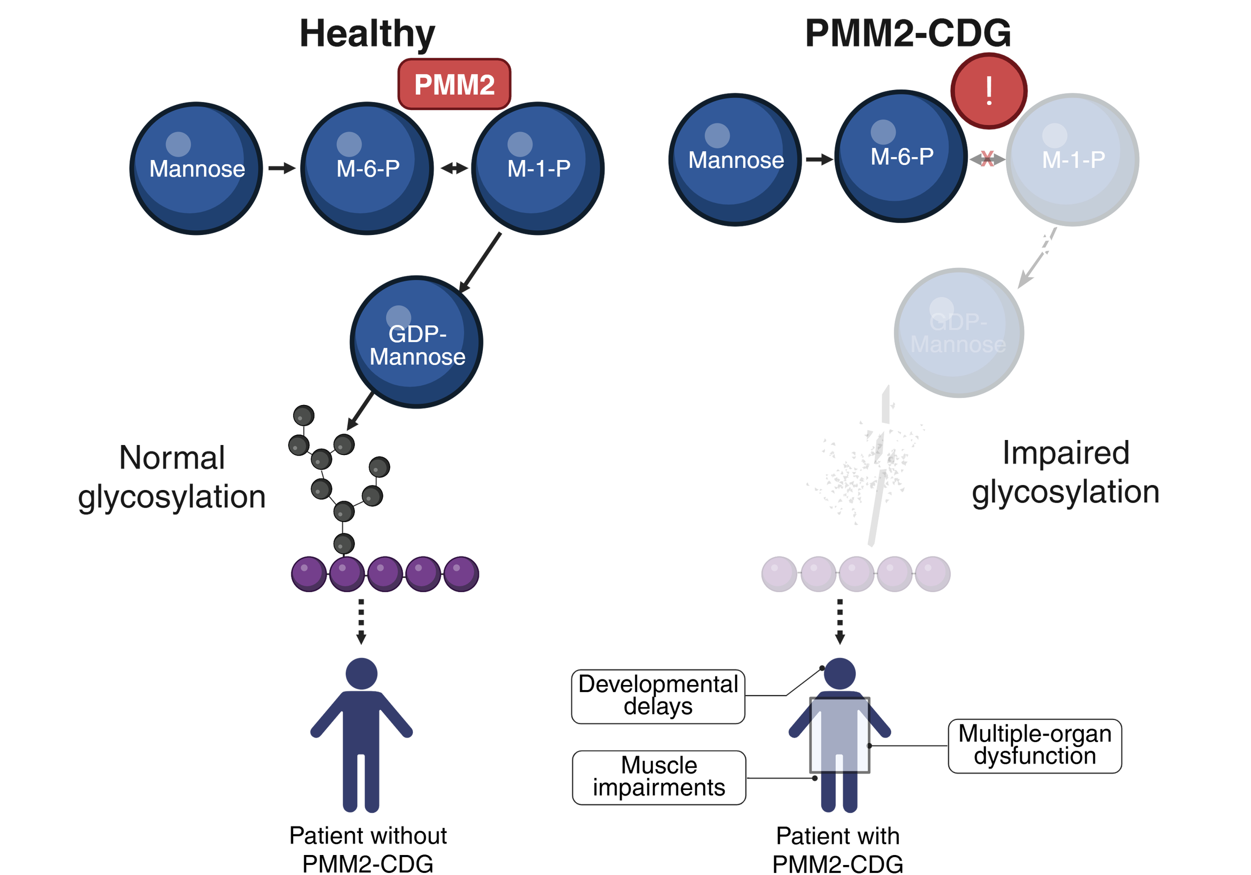 Alternative pathways (via glucose) cannot fully compensate for PMM2 deficiency.